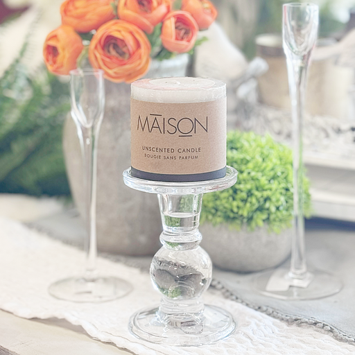 Small Ball Taper/Pillar Glass Candle Holder Enhance your home décor with our stately glass candleholder, designed to blend elegance and functional...