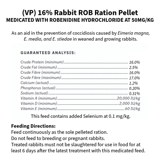 Berry HilRabbit ROB Ration Pellets - 25kg (Medicated) (VP) 16% Rabbit ROB Ration Pellet is medicated with Robenidine Hydrochloride at 50mg/kg, for use as an...