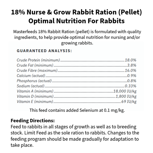 Berry HilRabbit Nurse & Grow - 25kg Masterfeeds 18% Rabbit Ration (pellet) is formulated with quality ingredients, to help provide optimal nutrition for...