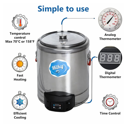 Milky DayStainless Steel Home Milk PasteurizerEco Mini 3.5-Gallon Stainless Steel Pasteurizer will process 3.5 gallons/14 litres of milk to a temperature of...