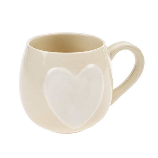 Berry HillBig Heart Mug A handmade ceramic mug featuring a white heart design on a soft cream background. Its generous size is ideal for coffee, tea, or hot ...
