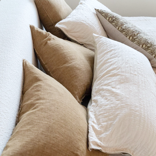 Berry Hill24x24 Lina Linen Pillow - Hazelnut Crafted from soft, stone-washed Belgian linen, this pillow features a subtle frayed edge that adds a modern twi...