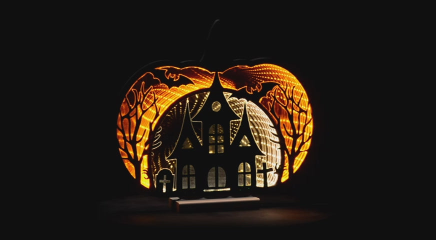 Bring Halloween to life with this 16-inch pumpkin featuring a glowing infinity light effect and flying bats. This plug-in décor piece creates a mesmerizing display, perfect for adding a spooky touch to your home.