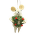 Felted Wool Ornament - 5" Mouse in Knit Sweater Holding Wreath