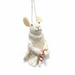 Handcrafted holiday ornament made from soft wool and polyester felt. Each mouse is dressed in a festive outfit and features a wire tail for easy placement. Ideal for decorating Christmas trees, wreaths, topping wine bottles, or sitting on shelves.
