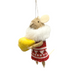 Handcrafted holiday ornament made from soft wool and polyester felt. Each mouse is dressed in a festive outfit and features a wire tail for easy placement. Ideal for decorating Christmas trees, wreaths, topping wine bottles, or sitting on shelves.