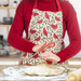 Bring festive cheer to your kitchen with this classic holiday apron. Made from 100% cotton, it’s soft, durable, and machine washable for easy care. Designed with a comfortable neck strap and adjustable tie back, it offers a perfect fit for all your holiday cooking and baking. 31" length. No pockets for a sleek, traditional look.