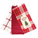 Set of 3 cotton Christmas Tree Farm kitchen tea towels in red and white.