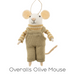 Handcrafted holiday ornament made from soft wool and polyester felt. Each mouse is dressed in a festive outfit and features a wire tail for easy placement. Ideal for decorating Christmas trees, wreaths, topping wine bottles, or sitting on shelves.