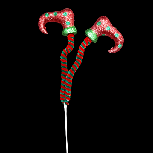Berry Hill23" Red and Green Glitter Elf Feet Spray Playful elf boots accented with sparkling glitter, this cheerful stem brings fun, festive personality to w...