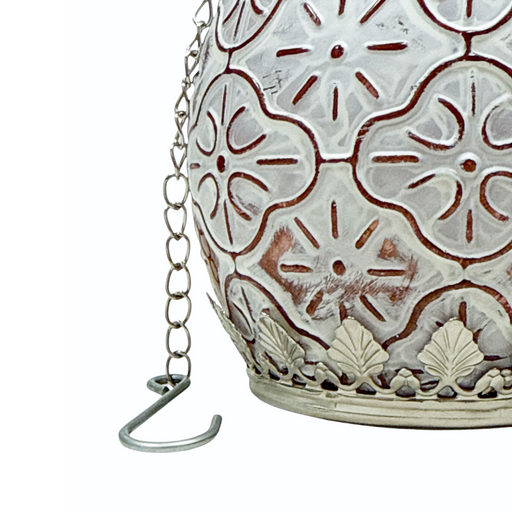 Berry HillSmall Rose LED Glass Lantern with Timer A white finish with pink/rose undertones. This glass lantern features textured glass with an intricate patt...