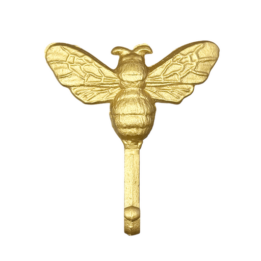 Berry Hill5.5" Gold Bee Single Hook Gold painted single iron hook with hanger on the back. Measures 5.5"h x 5"w.