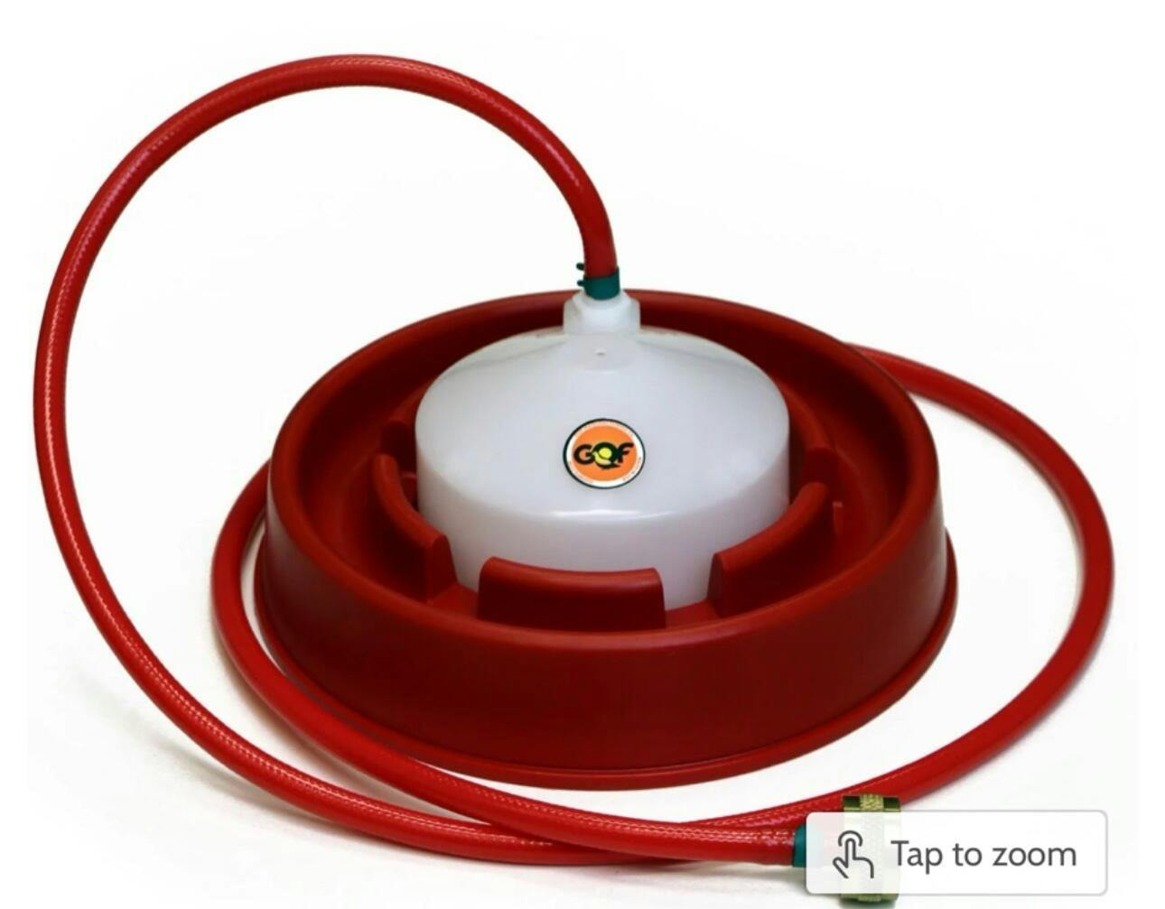 9 inch dish drinker with 5ft normal pressure hose and garden hose bib.