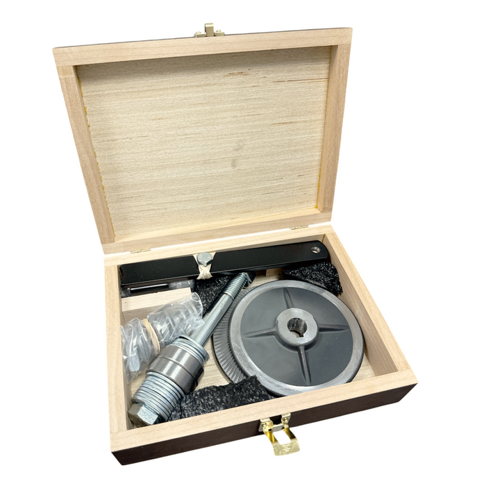 This beautifully hand-stained hardwood case holds essential components to enhance the durability and functionality of your Country Living Grain Mill.