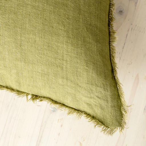 Berry Hill24x24 Lina Linen Pillow - Kelp This pillow, made from luxurious Belgian linen, is updated with a charming frayed edge, making it a beautiful stand...