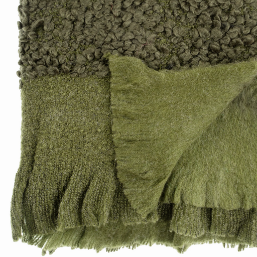Berry HillVallnord Boucle Throw Blanket - Olive The Vallnord Bouclé Throw is luxuriously chunky with thick bouclé on one side and felted wool on the reverse...