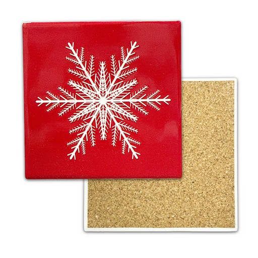 Set of 6 Textured Printed Ceramic Coaster - Merry Snowflake