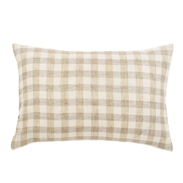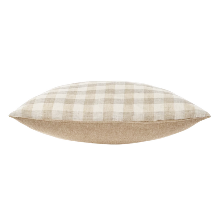 The Cape Check Pillow features a timeless gingham pattern in 100% linen on the front and solid cotton weave in a complementary tone on the back. Each pillow includes a premium Responsible Down Standard (RDS) certified feather/down filler.