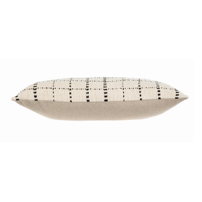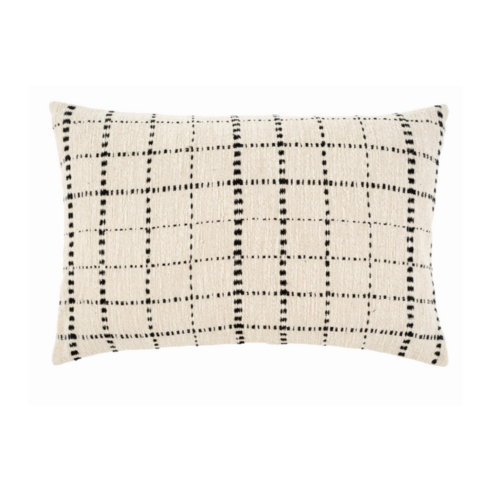 Handcrafted in India, the Handloom Check Pillow features an easy-to-style windowpane check design with black woven stitching on a neutral base.