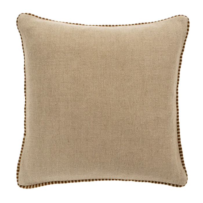 The Honfleur Linen Pillow's natural colour brings an earthy and grounded feel to your décor, while the chain-stitched stripe trim adds an unexpected pop of personality and interest.