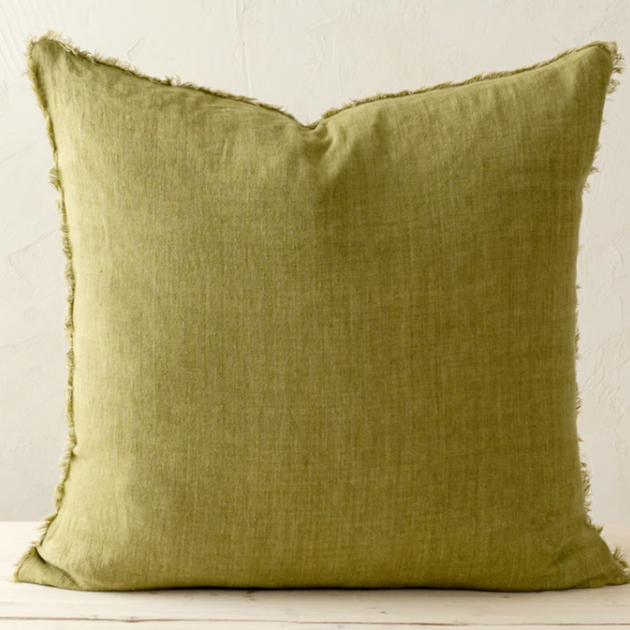 This pillow, made from luxurious Belgian linen, is updated with a charming frayed edge, making it a beautiful standalone cushion or a perfect backdrop for layering. The soft linen and premium feather-down filler provide exceptional comfort and style. Ideal for enhancing the aesthetics of your living space, this pillow is both functional and fashionable.