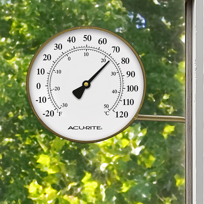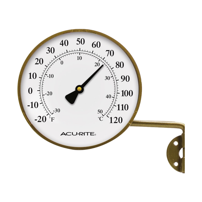 Includes a pivoting arm for easy wall mounting and 360º viewing. Weather-resistant metal thermometer construction is perfect for indoor or outdoor use.